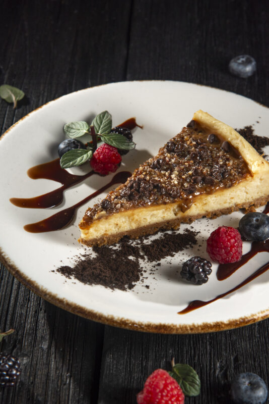 Pastel de queso estilo New York. Pregunta por los sabores de temporada.